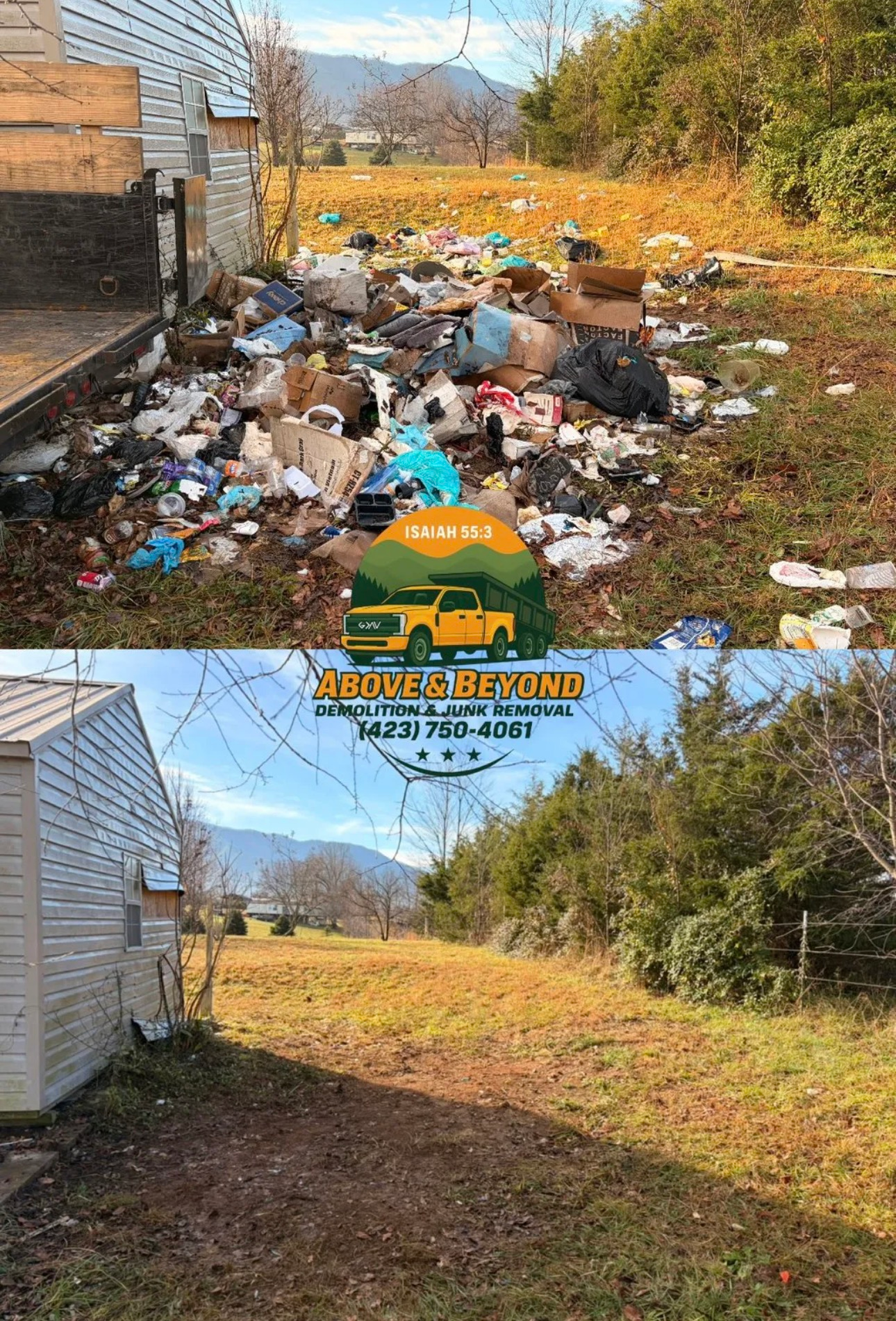 Once the debris is bagged and loaded, you'll notice clearer sightlines across your property, better drainage along edges, and a yard that looks maintained rather than abandoned. Above & Beyond Demolition & Junk Removal completes most residential yard cleanups in a few hours. Removal improves curb appeal and reduces fire hazards in dry months.